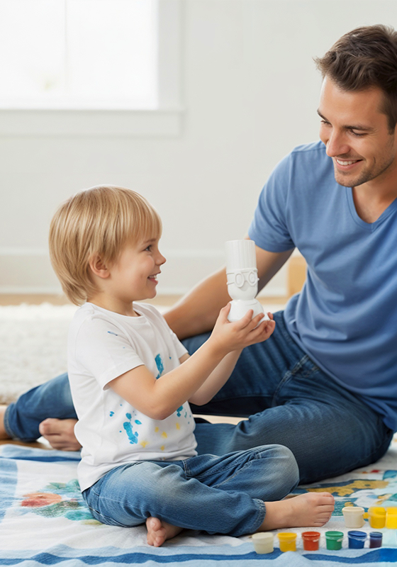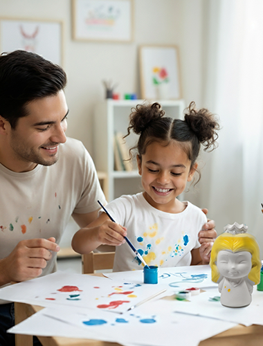 O Clube da Art Criativa me ajudou a adotar uma rotina em família todo mês. Nos reunimos na mesa e cada um pinta sua própria peça de gesso, compartilhando ideias e incentivandoa criatividade de cada um. Ao final, simulamos uma pequena exposição das pinturas, ele se sente um Picasso!
