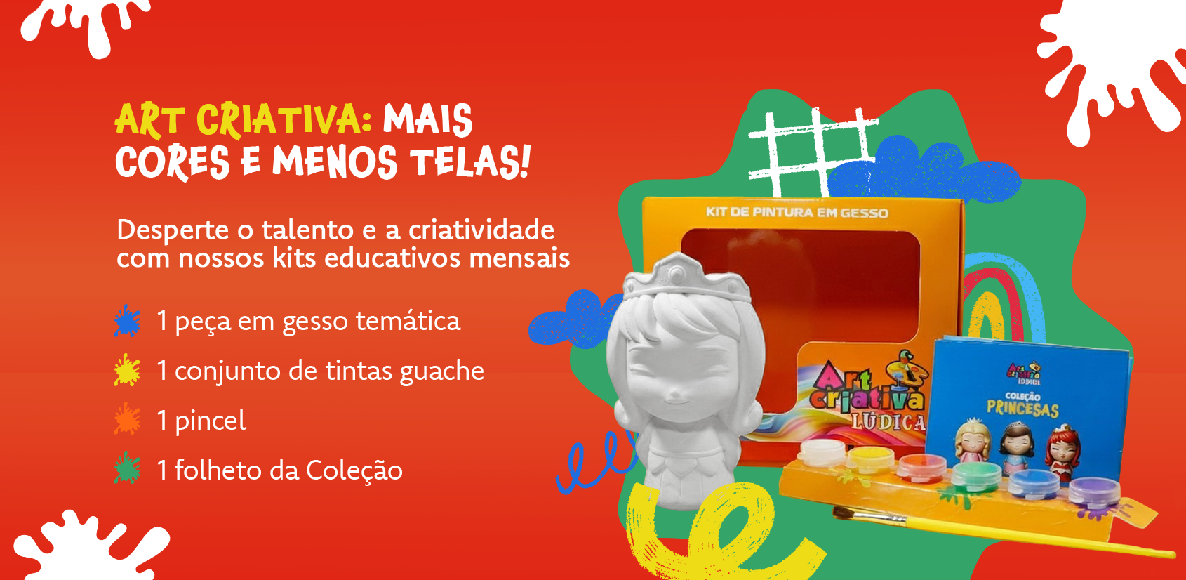 - Receba um kit mensal com todos os materiais das Coleções exclusivas Art Criativa